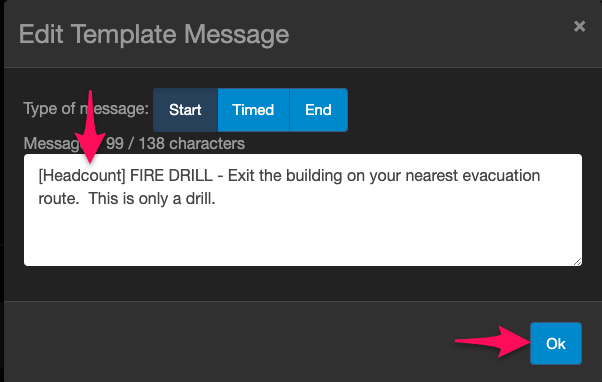 - Click the +Template button to add a emergency template (eg: "Tornado Drill")